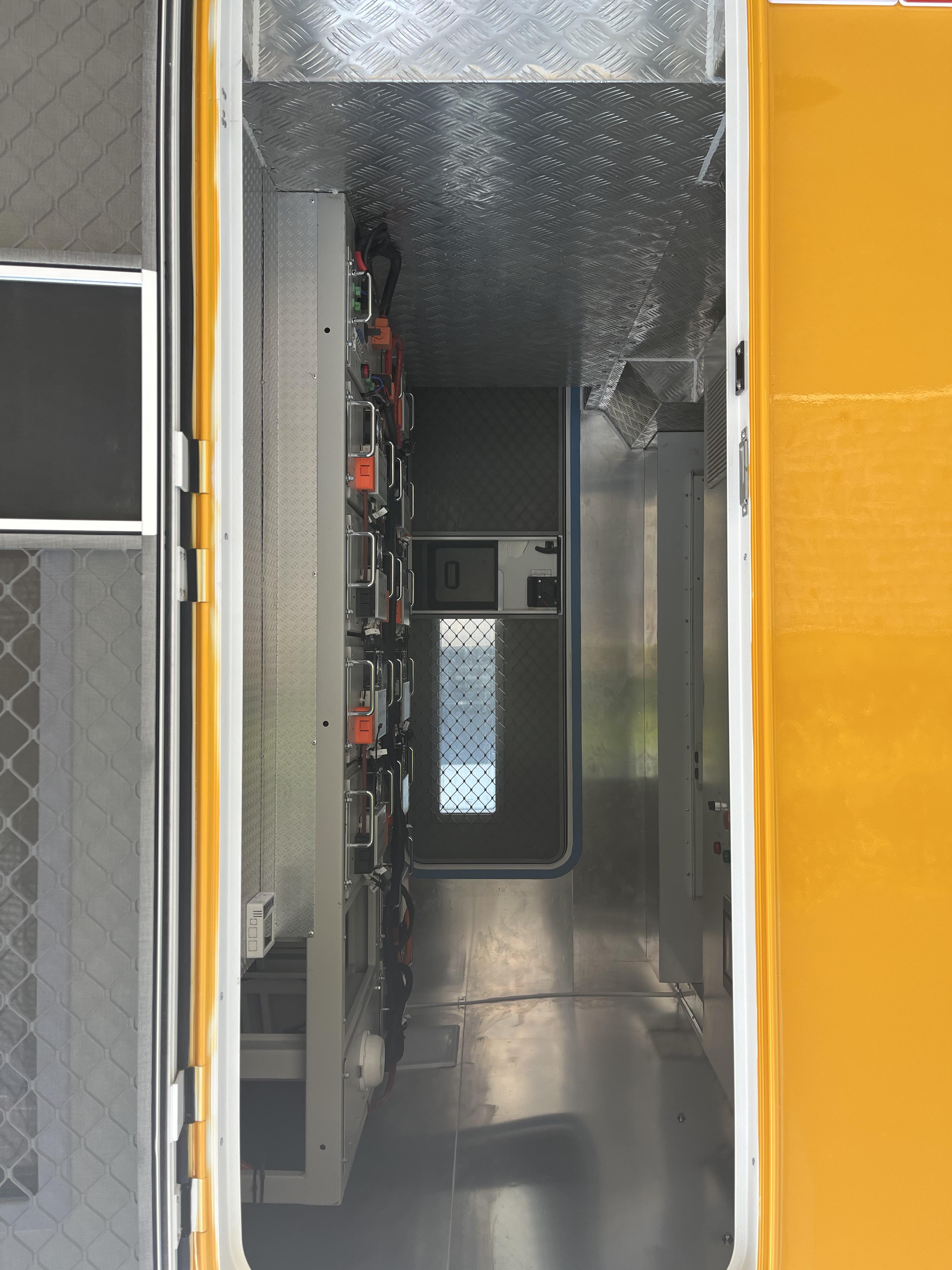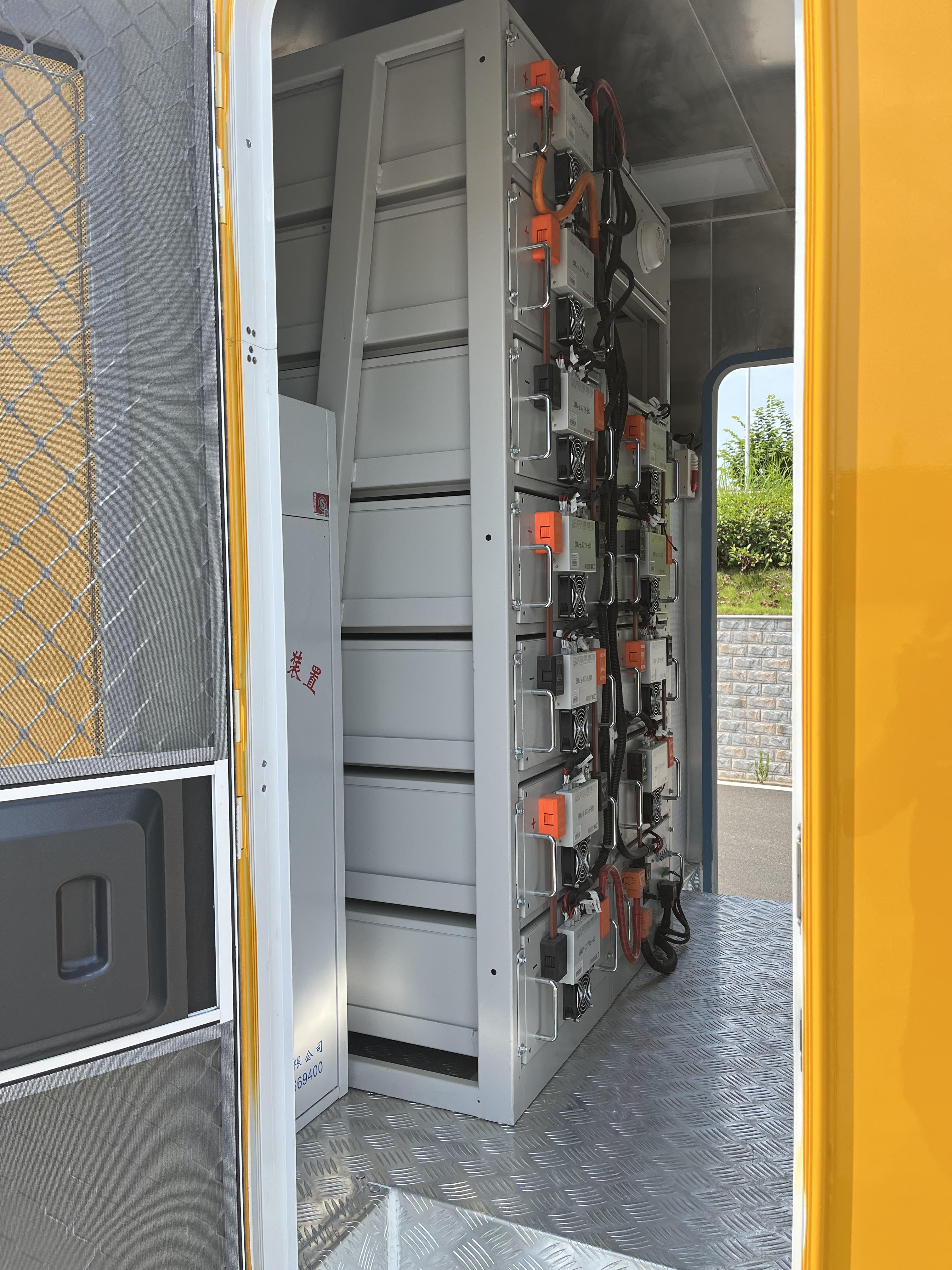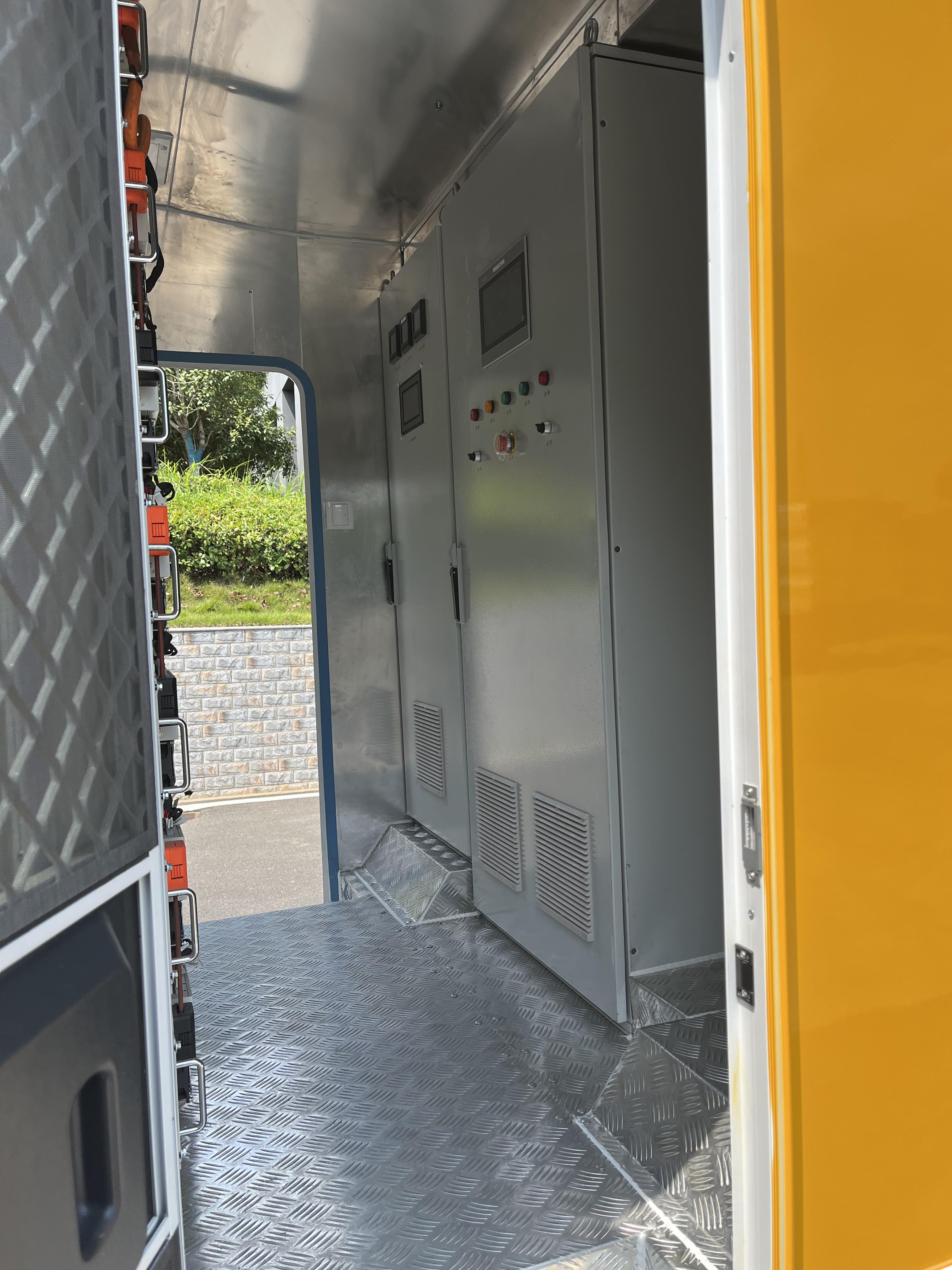 8,通過充電樁快速補電:儲能車外艙設計充電樁充電插座,可通過直流快充樁對儲能車電池快速補電。