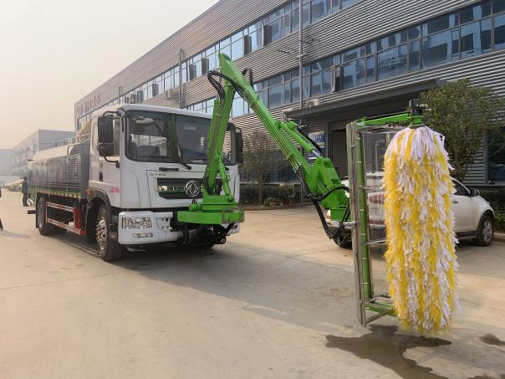 隧道清洗車由底盤,罐體、機械臂、水泵、噴嘴,清洗刷、一體完成工作。機械臂可359°旋轉,所有的操作都在駕駛室完成。