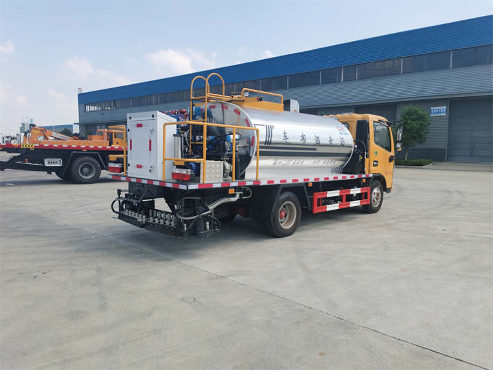 四、其他說明: 瀝青灑布車是一種專業(yè)灑布乳化瀝青、稀釋瀝青、熱瀝青、高粘度改性等瀝青的半智能科技產品。用于修筑高等級公路瀝青路面 底層的透層油、防水層、粘結層的灑布。該灑布車由汽車底盤、瀝青罐體、瀝青泵送及噴灑系統(tǒng)、液壓系統(tǒng)、燃燒及導熱油加熱系統(tǒng)、控 制系統(tǒng)、氣動系統(tǒng)、操作平臺構成。