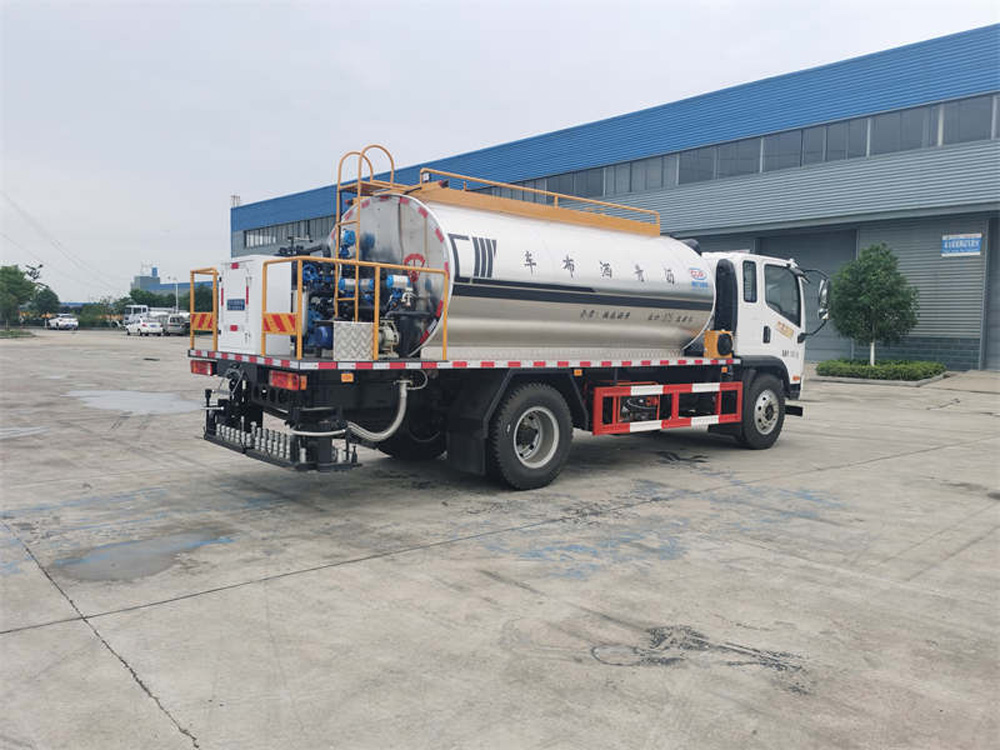 四、其他說明: 智能型瀝青灑布車是一種專業灑布乳化瀝青、稀釋瀝青、熱瀝青、高粘度改性等瀝青的半智能科技產品。用于修筑高等級公路瀝青路面 底層的透層油、防水層、粘結層的灑布。該灑布車由汽車底盤、瀝青罐體、瀝青泵送及噴灑系統、液壓系統、燃燒及導熱油加熱系統、控 制系統、氣動系統、操作平臺構成。
