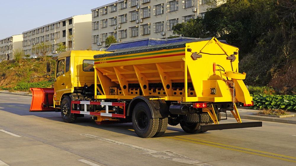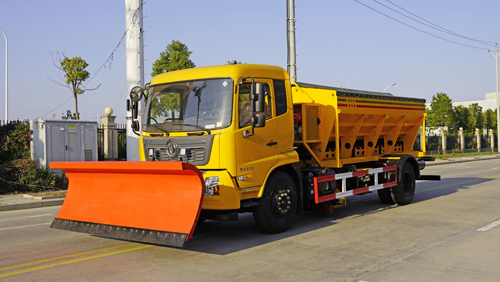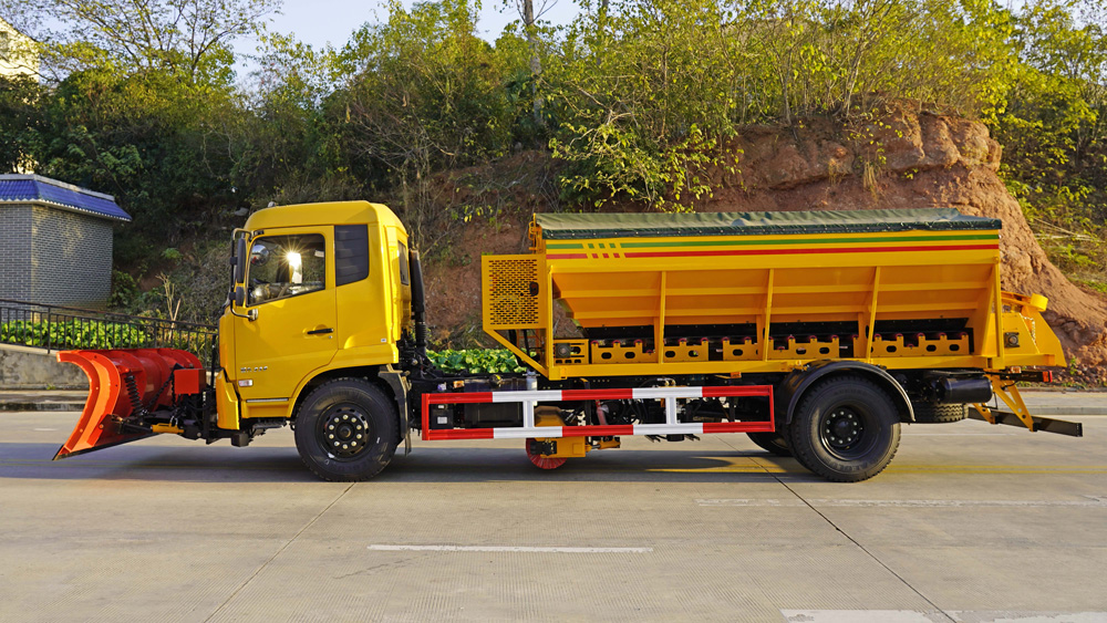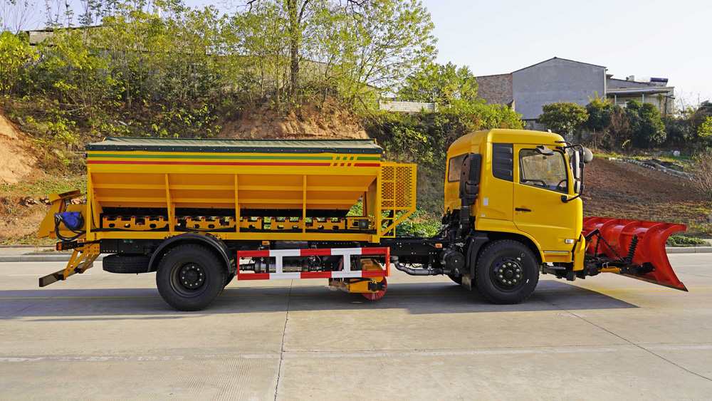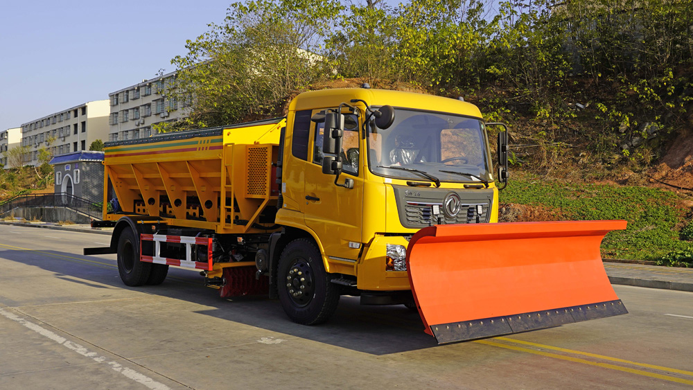 四、其他說明: 東風天錦多功能除雪車,集掃雪、推雪、吹雪、撒布等多種功能于一體,可通過更換不同的作業(yè)裝置,如除雪鏟、掃雪滾刷等,滿足不同場景下的除雪需求,有效提升掃雪鏟冰的工作效率和作業(yè)質(zhì)量.