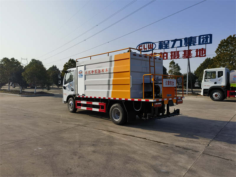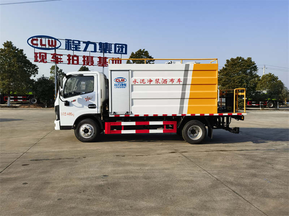 四、其他說明: 水泥罐、清水罐采用 Q235 優(yōu)質(zhì)碳鋼制作,高壓水泵,水泥砂漿泵(專用),攪拌系統(tǒng),液壓系統(tǒng),15 米高壓清洗管道(帶卷盤、手持清洗槍),尾部 13 個水泥漿專用噴頭,最大灑布寬度 4 米。其它配置常規(guī),可選裝袋裝水泥提升裝置(用于袋裝水泥向罐體頂部運輸)。