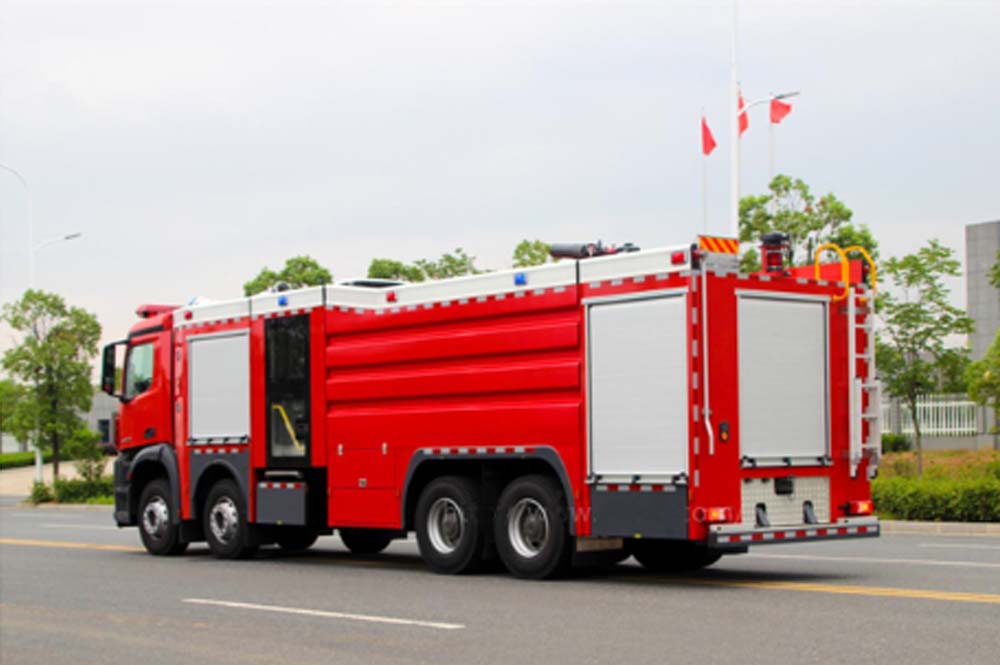 | 備注 | 罐體總容積為18.1立方米,水罐容積:12.6立方米,水罐尺寸:3460×2475×1540mm,泡沫液罐容積:5.5立方米,泡沫液罐為一異型罐,泡沫液罐前端尺寸:1480×1190×1540mm,泡沫液罐后端尺寸:800×2475×1540mm。整體式側防護結構,后防護裝置材料:Q235A,截面尺寸:100×150mm,與車輛連接方式:螺栓連接,后防護離地高度:395mm。EBS生產企業為WABCO,型號為EBS4+。主要專用裝置有消防泵、消防炮。 | ||