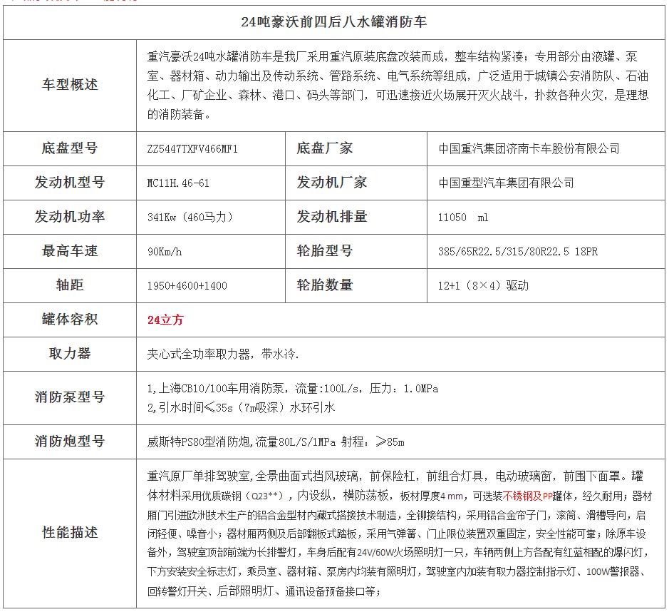 一、底盤配置: 采用重汽豪沃HOWOZZ5447TXFV466MF5車身,配置玉柴MC11.46-61發(fā)動機460馬力,國六排放標(biāo)準(zhǔn),軸距1950+4600+1400(mm),整備質(zhì)量17.2噸,額定載質(zhì)量24.8噸,陜齒十二擋變速箱,帶動力轉(zhuǎn)向,帶原廠空調(diào),該車上黃牌,城區(qū)道路請注意限行標(biāo)識。